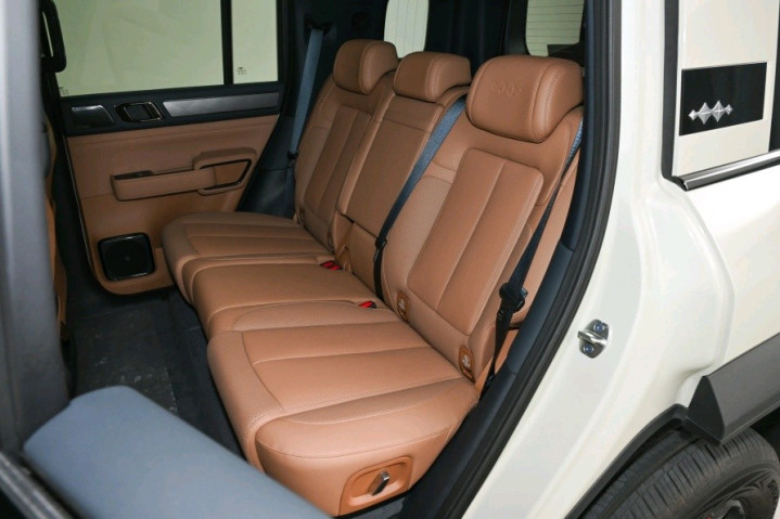 内饰研究偏向勤俭豪华作风,中控台给与T型布局,功能分区了了,内饰笼罩皮革与搪塑材质,触感与质感雅致。车辆定位兼顾家用与越野,内饰放手传统硬派越野的野蛮研究,升迁日常使用闲静地。空间进展舒服家庭使用需求,车辆给与五座布局,轴距2800毫米。身高180厘米的使用者,前排头部空间约一拳三指,视线开朗;后排头部空间约一拳两指,腿部空间约三拳,乘坐空间宽敞,满载五东谈主无显著微小感。座椅给与Nappa真皮材质包裹,东谈主体工程学研究,填充物优柔,相沿性与包裹性平衡。全系座椅支执电动更动、透风与加热功能,中高配车型前排配备推拿功能,主驾驶座椅支执纪念、腰部相沿与头部更动,资料行驶可缓解疲倦。空间拓展才略隆起,前排座椅前移并根除头枕后,可与后排坐垫相连,后排靠背放倒后造成纯平空间,舒服露营休息与大件物品装载需求,装载户外装备、行李等物品愈加纯真,适配家庭出行与越野露营场景。