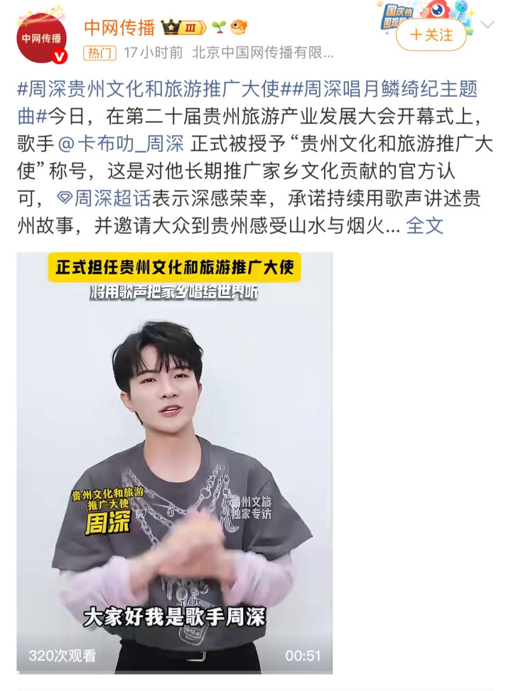 周深用流量履行贵州文旅、传承民族文化、深耕音乐。
