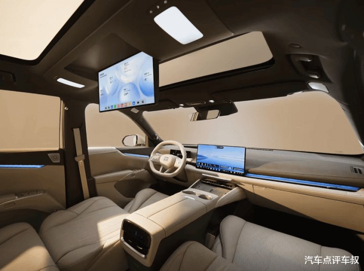 座舱层面,行为大六座SUV,ID.ERA 9X搭载“云栖智舱”,不仅前排有双联大屏,后排有文娱屏,门板上还配备Smart Surface魔术屏,接受微米级激光打孔时间,将屏幕避讳在木纹饰板之下,亮起后,高档感径直拉满。此外,第二排副驾侧座椅解救动态零重力功能,配备12升防下潜气囊及集成式安全带,兼顾好意思瞻念性与安全性。