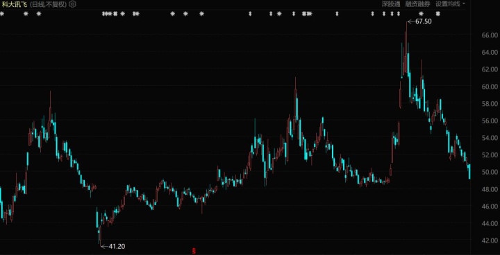 科大讯飞股价阐扬(自2025年1月于今)