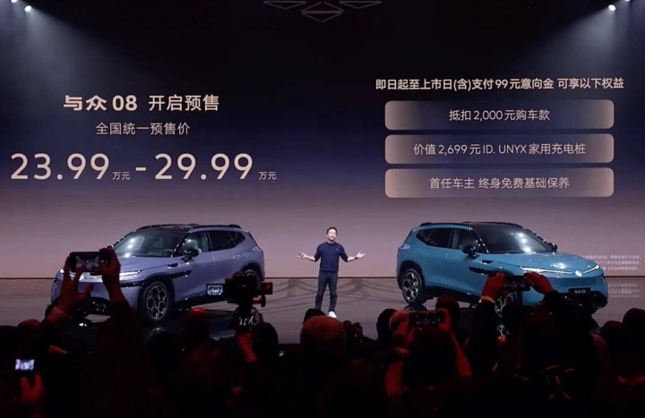 3月26日,行家与众08认真开启预售,预售价钱为23.99万元-29.99万元。同期,新车推出了限时预售权利。当作行家汽车与小鹏汽车纠合开辟的首款车型,与众08搭载800V时期,L2++ 级智驾,提供最大95度电板,续航才能最大为730km。从两边签署时期互助左券到新车认真量产,仅用时24个月,当今与众08已于3月13日量产下线,展望将于上半年上市。