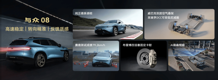 在操控方面,与众08配备双腔空气悬架、DCC自稳当底盘转念、AI智能底盘、魔毯智能预瞄、布雷博前双向四活塞固定卡钳等时期,并通过全球专科驾控团队的调校,用户带来了沉稳、精确、质感的地说念“德味”操控。同期新增防晕车形式,可将晕车带来的不适感降至最低。