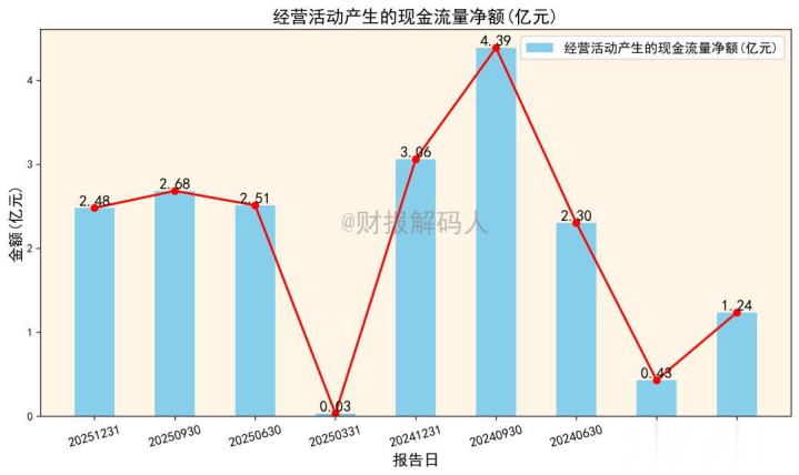 关联词,现款流季度波动极大。举例,2025年第一季度净额仅为0.0329亿元,与当季0.28亿元的净利润差距悬殊,可能存在季节性回款或款项支付集中的问题。